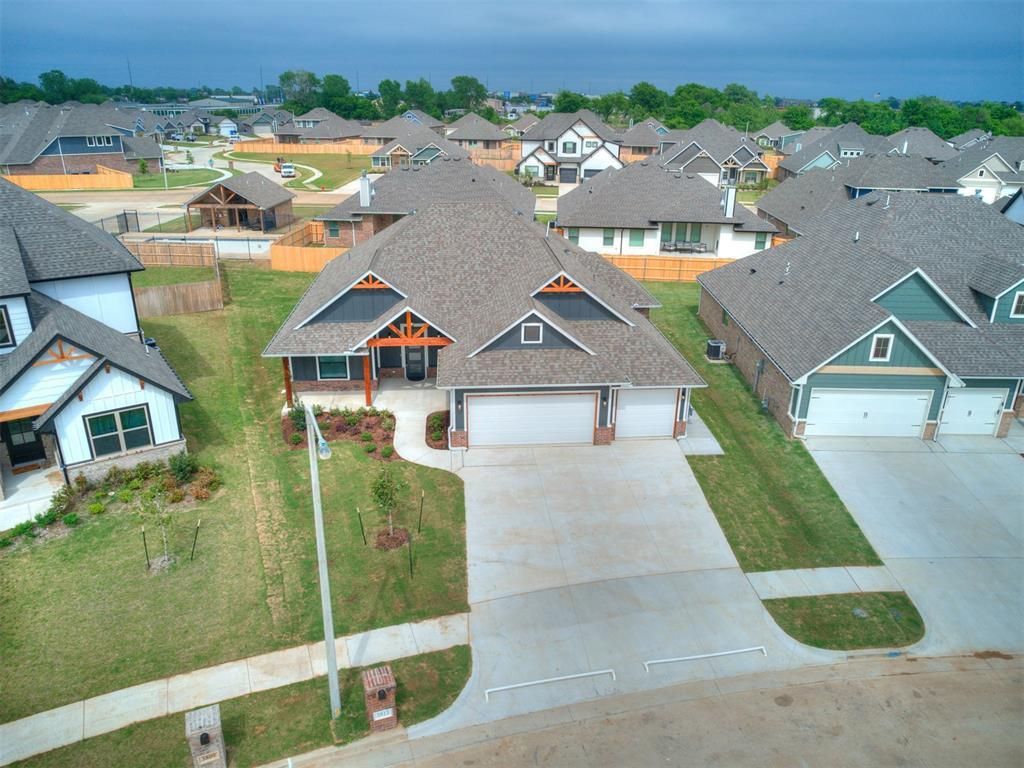 *COME VIEW DURING PARADE OF HOMES April 25th-26th 2-4pm. Welcome to Cedar Lane in South Norman, where thoughtful design and modern style come together in this stunning new construction home. Offering 4 bedrooms, 2 full bathrooms, and a convenient half bath for guests, this flexible floorplan is perfect for a variety of lifestyles. The fourth bedroom can easily serve as a dedicated study, giving you the ideal work from home setup without sacrificing space. As you step inside, you will immediately notice the open layout paired with tall ceilings and beautiful cathedral beams that create a bright and inviting atmosphere. Wood look tile flows throughout all high trafficked areas, combining durability with a warm, upscale feel. The living room is anchored by a striking floor to ceiling bricked fireplace that adds both character and a cozy focal point. The kitchen is designed to impress, featuring marble countertops, stylish pendant lighting, a vent hood, pot filler, and a spacious walk in pantry. Just off the 3 car garage entry, you will find a functional mud bench with coat hangers that helps keep everything organized. Primary bathroom showcases shiplap accents, black hardware, and a beautifully designed shower with basketweave floor tile. Primary closet is both practical and luxurious, complete with a built in dresser and direct access to the laundry room for everyday convenience. The laundry room itself stands out with charming tile and a folding counter, making daily tasks more enjoyable. Step outside to a large covered back patio that is perfect for relaxing or entertaining. The backyard backs directly to the community pool, and there is even the option to add a personal gate for easy access. The exterior features a 3 car garage, upgraded landscaping, and cedar post/accents that enhance curb appeal. Cedar Lane offers a welcoming community with walking paths and a handicap accessible playground, making it a great place to enjoy the outdoors.